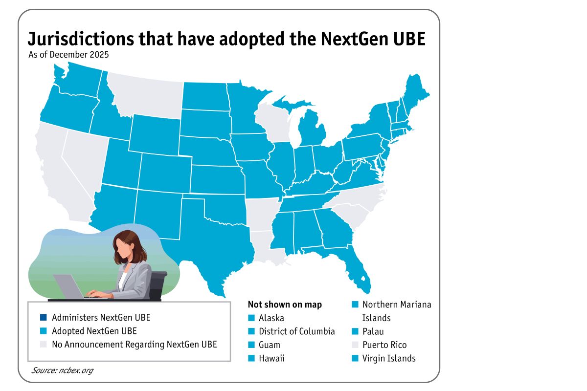 By 2028, many of the nation’s jurisdictions will have transitioned to the new exam, including New York, Florida, Texas, Massachusetts, the District of Columbia, Pennsylvania, Georgia and Illinois, among others.